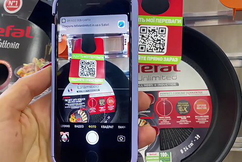 A detailed 3D model of the Tefal Unlimited frying pan was created, highlighting its key features. AR activation was implemented via a button on partner websites and a branded landing page. For offline retail, a QR code was prepared to launch the AR experience and provide additional product information. The project was developed using WebAR technology.