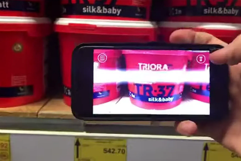 An AR solution was created where each SKU triggers a dedicated scenario, showing paint mixing instructions, the final color outcome, and proper application techniques. Users access the experience via their smartphones at the point of sale.