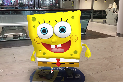 A creative concept and songs were developed for each character. 3D characters (Minion, Booza, SpongeBob) were created and animated with dance movements, with professional voice-over. The entire quest is programmed using augmented reality technology and integrated into the shopping mall space.