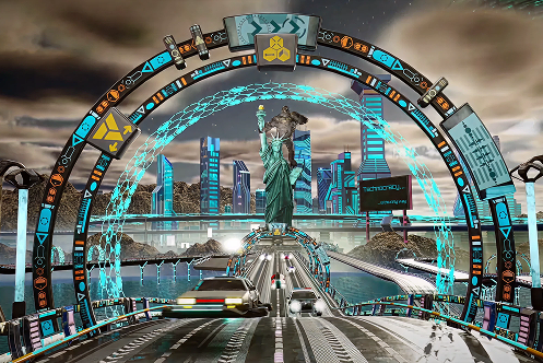 A cinematic 3D video recreates the recognizable atmosphere of the “Ready Player One” universe in a cyber style. The video creates a sense of immersion and sets guests of the entertainment complex into a dynamic, game-like mood.