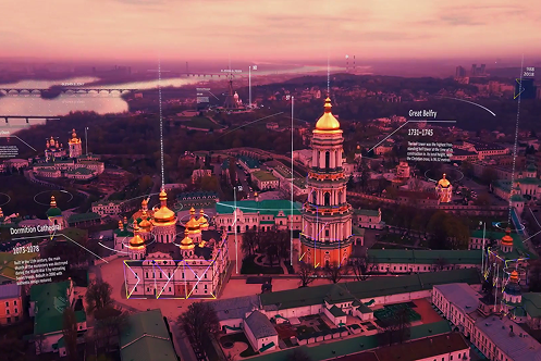 Create a short promo video of Kyiv landmarks with historical facts presented in an infographic format and an emphasis on the value of the Lavra.